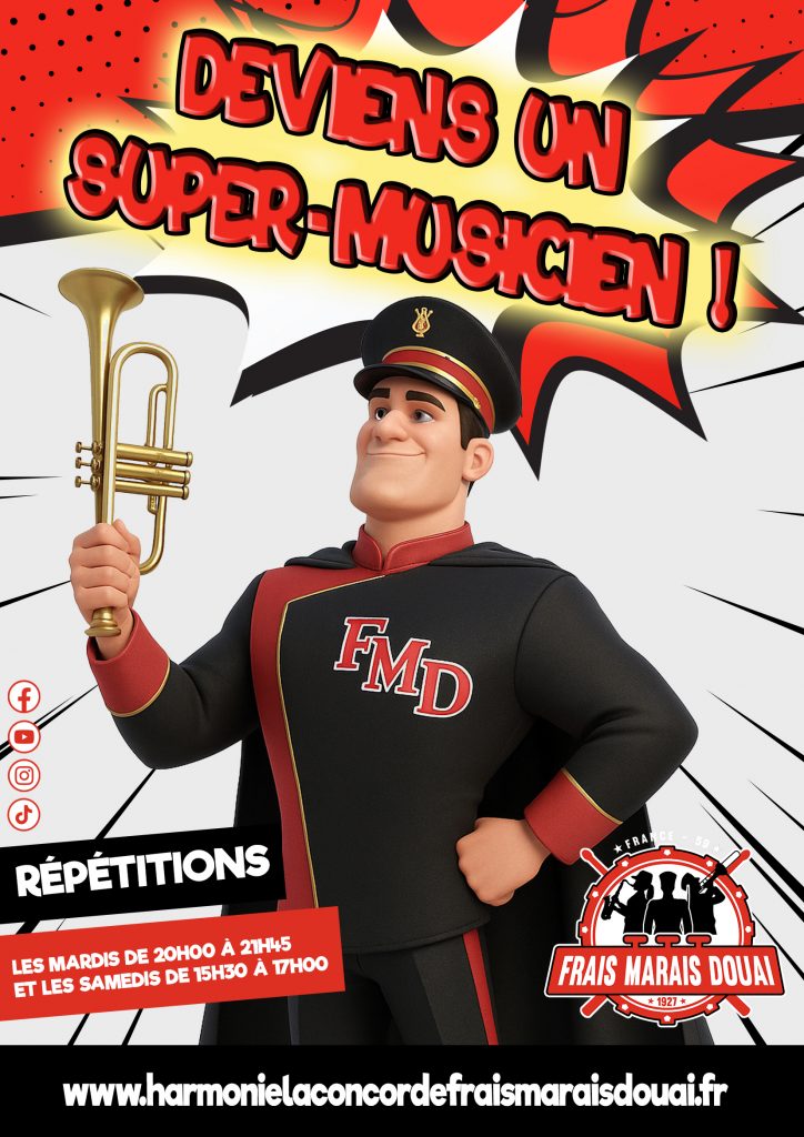 Ambiance festive garantie avec l’Harmonie La Concorde de Frais-Marais Douai ! Vecteur de bonne humeur, elle saura ravir les plus petits comme les plus grands avec son répertoire varié, dynamique et sans cesse renouvelé !